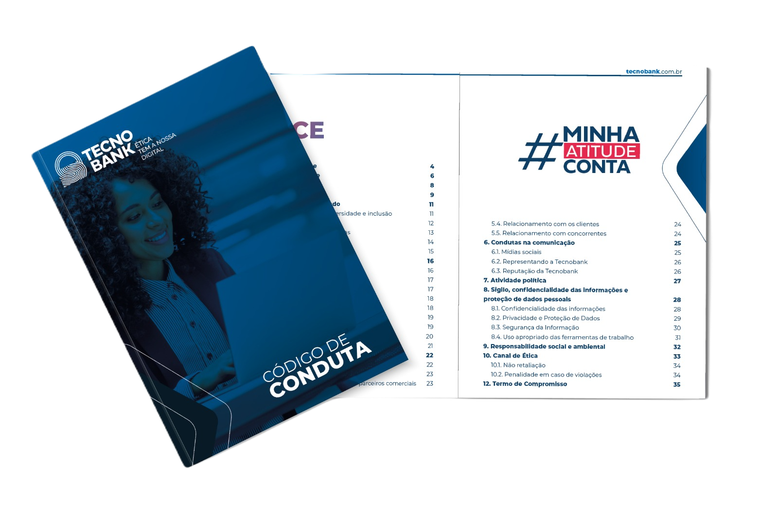 O compromisso da Tecnobank as melhores práticas de governança é o pilar do nosso Programa de Integridade, composto por políticas e procedimentos que compõem uma frente ampla contra fraudes, corrupção e violações ao nosso Código de Conduta, fio condutor da relação com cada cliente, parceiro, colaborador e órgão regulador.